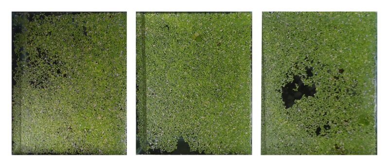 Η βιντεοπροβολή συνοδεύεται από μια εγκατάσταση με 16 μικρά ενυδρεία τα οποία περιέχουν υδρόβια φυτά, συγκεκριμένα τα είδη λέμνα η ελαχίστη και σπιροδέλλα η πολύρριζη. Πρόκειται για επεκτατικά φυτά που απαντώνται σε λίμνες, ρυάκια και στάσιμα νερά. Ιδιαίτερα ανθεκτικά σε ασθένειες και εχθρούς, μπορούν να χρησιμοποιηθούν για την αποκατάσταση υποβαθμισμένων υδάτων, και γι’ αυτό θεωρούνται μεγάλης οικολογικής σημασίας. Εκτός από τα ενυδρεία, παρουσιάζεται ένα βιβλίο σε μέγεθος Α4 με τα κείμενα της βιντεοπροβολής, η οποία είναι χωρισμένη σε τρία μέρη, και ένα γραφείο φτιαγμένο από ξύλο φλαμουριάς, το οποίο αποτελεί αντίγραφο-μινιατούρα του γραφείου του Henry David Thoreau.